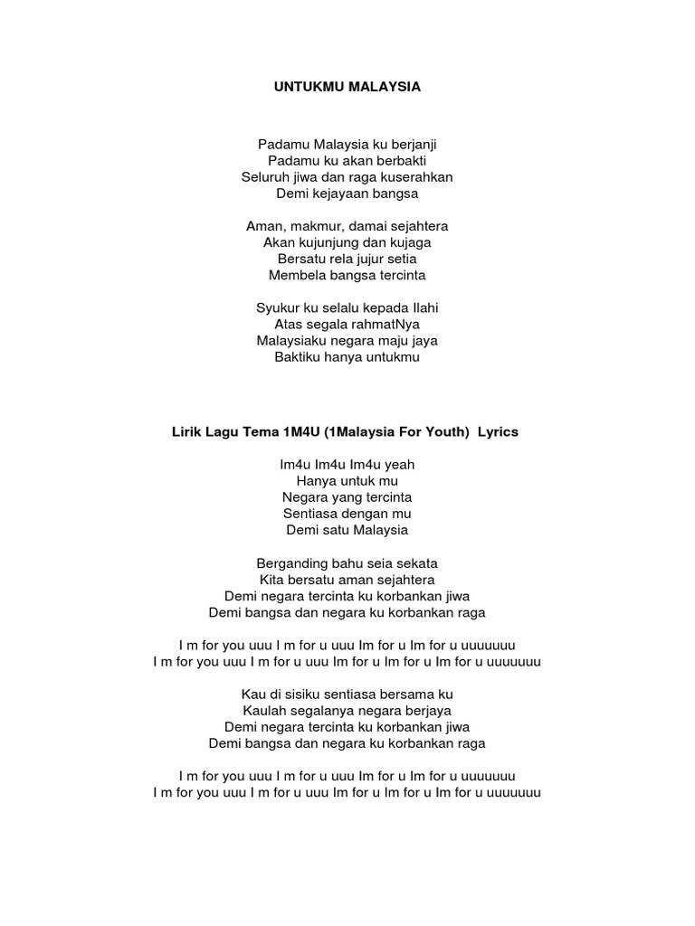 Lirik Lagu Untukmu Malaysia / Slow rock malaysia baiknya jika cinta ini boleh bersemi menghapus resah dengan ria relung.. Lirik lagu dan video klip. Teringat lagi tentang engkau menggambarkan kenangan kita waktu dahulu mana sahaja kau berada. Lagu malaysia untukmu ibu mp3 & mp4. Ku bawa semua manusia penyebab sedihmu ketika ku tiba membawa bahagia untukmu. Setiap ku mendengar kalimat sayang apa kabarmu sungguh remuk rasa hatiku buatku harus bertanya.